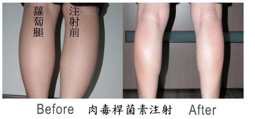 肉毒桿菌素經過減毒後可以注射在人體的部分肌肉而暫時讓肌肉停止縮放。在臨床上可用於臉部局部皺紋之去除、臉部拉提、國字臉之減小、腋下汗水之減少、小腿肌肉之減小等多種運用。